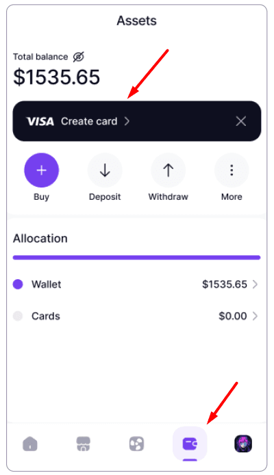 Your virtual card is issued instantly and becomes active as soon as it’s created, so you can start using it for online payments or add it to Apple Wallet / Google Wallet for NFC purchases.