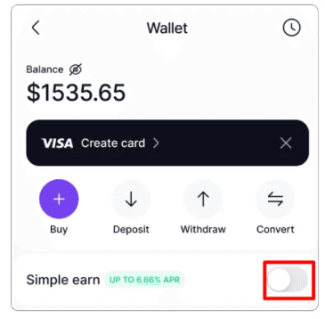 Once you turn it on, your balance starts generating rewards automatically without locking your funds or limiting withdrawals.